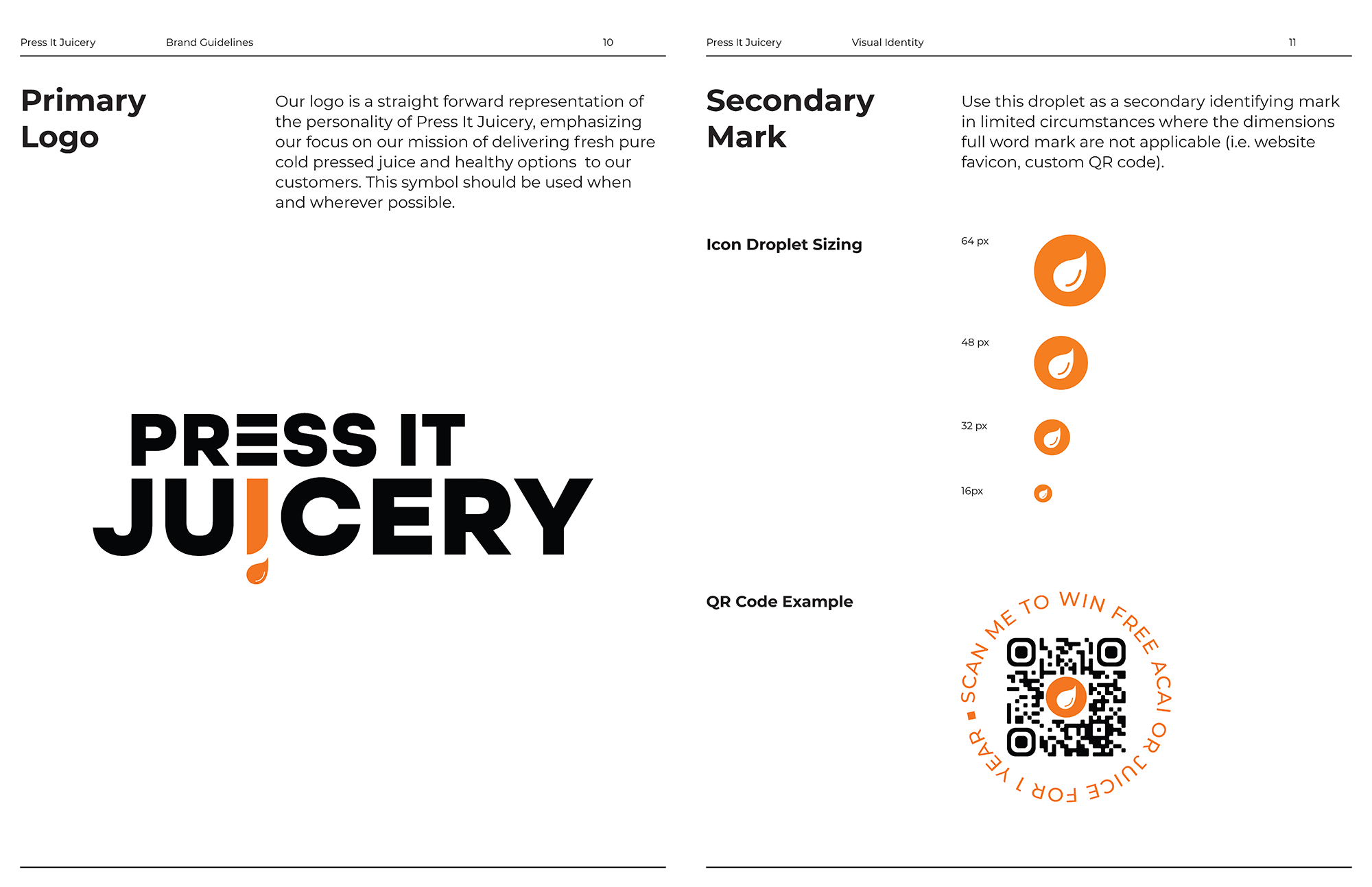 I made a change to the logo. To make the brand more approachable, I removed the heavy border surrounding the logo and let the logo breathe by itself. For small spaces, such as a favicon, I took the drop of juice from the logo and made that into a secondary logo mark.