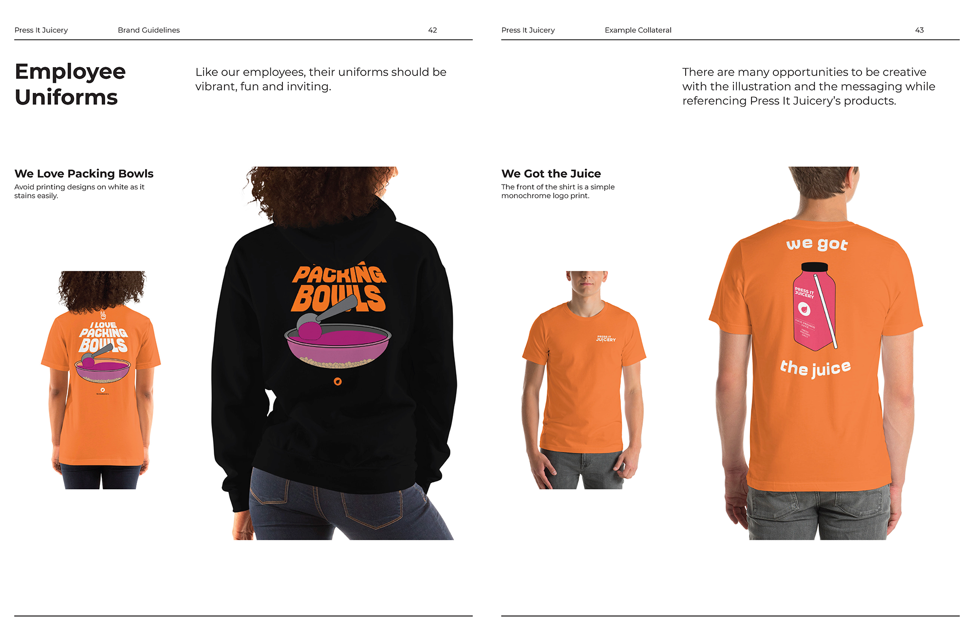 As the store continued to grow in sales, Josh hired more staff for Press It Juicery. I was asked to create a handful of designs to go on staff uniforms. These uniforms are designed to be DTG printed with a print on demand company.