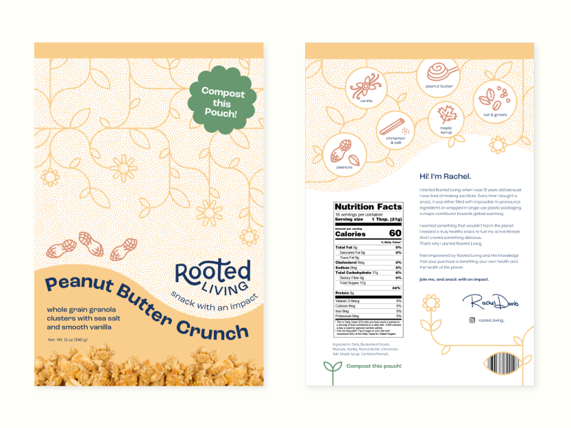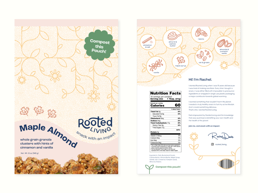 I worked on this project as a part of Scout, Northeastern's student-led design organization. At Scout, you are assigned a team of other student designers and client (usually from Northeastern's IDEA venture accelorator club, or Entrepreneur Club). Over the course of a semester, you work with your team to solve the client's design problems. For this project I worked with Sam Marchesi, our project lead, Phoebe Lasater, Josie Britt, and Sam Steenstrup. We joined Rooted Living to establish its brand identity, craft packaging for its flagship product, and enhance its social media presence through the creation of templates and assets.